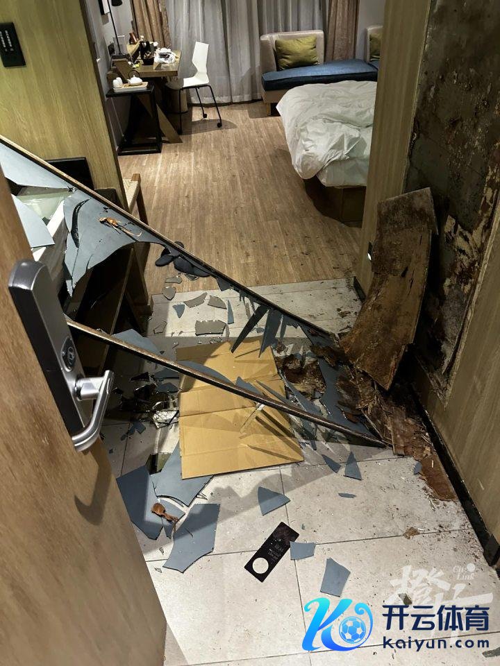 现场的图片袒露:栈房客房内,围聚卫生间的一面镜子倒了下来,碎落一地。