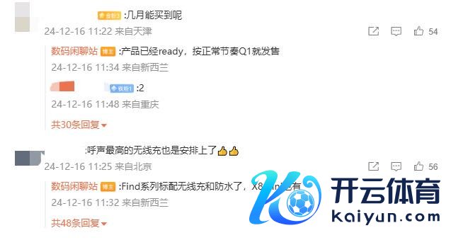 该博主还在指摘区中讲演了部分网友问题:针对 OPPO Find N5折叠屏手机什么时辰能买到,博主称“居品依然ready,按闲居节拍Q1就发售”;针对无线充电问题,博主讲演“Find系列标配无线充和防水了,X8 mini也有”。