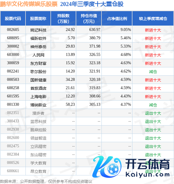 鹏中文化传媒文娱股票为股票型基金,字据最新一期基金季报知道,该基金钞票竖立:股票占净值比92.38%,无债券类钞票,现款占净值比8.67%。基金十大重仓股如下: