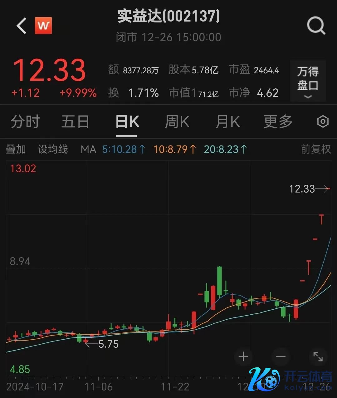 12月26日,实益达驱散6连板,凯淳股份、中百集团涨停。
