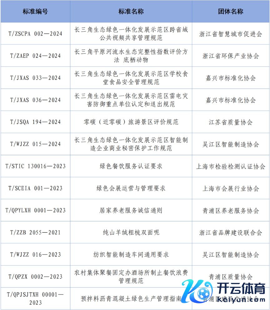 纳入2024年示范区协同团体圭臬清单的13项圭臬波及绿色低碳、智能制造以及绿色餐饮做事等限度云开体育,包括了零碳(近零碳)旅游景区评价规范、示范区智能制造企业生意好意思妙保护责任规范、绿色餐饮做事认证条款、示范区跨省域群众视频分享解决规范等团体圭臬,全体体现出示范区绿色低碳及跨区域协调调和的秉性。